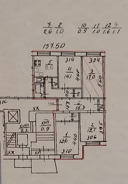 Жилая площадь 56.8 м2