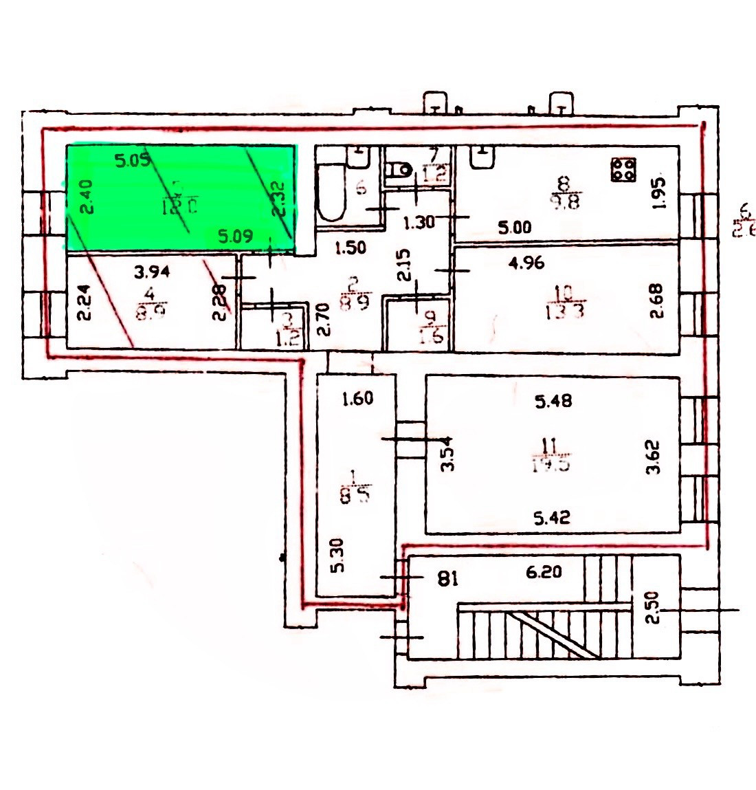 Перспективная квартира к расселению, переводу в коммерческую недвижимость, соседние квартиры на 1 этаже выкуплены. В доме нет коммунальных квартир.