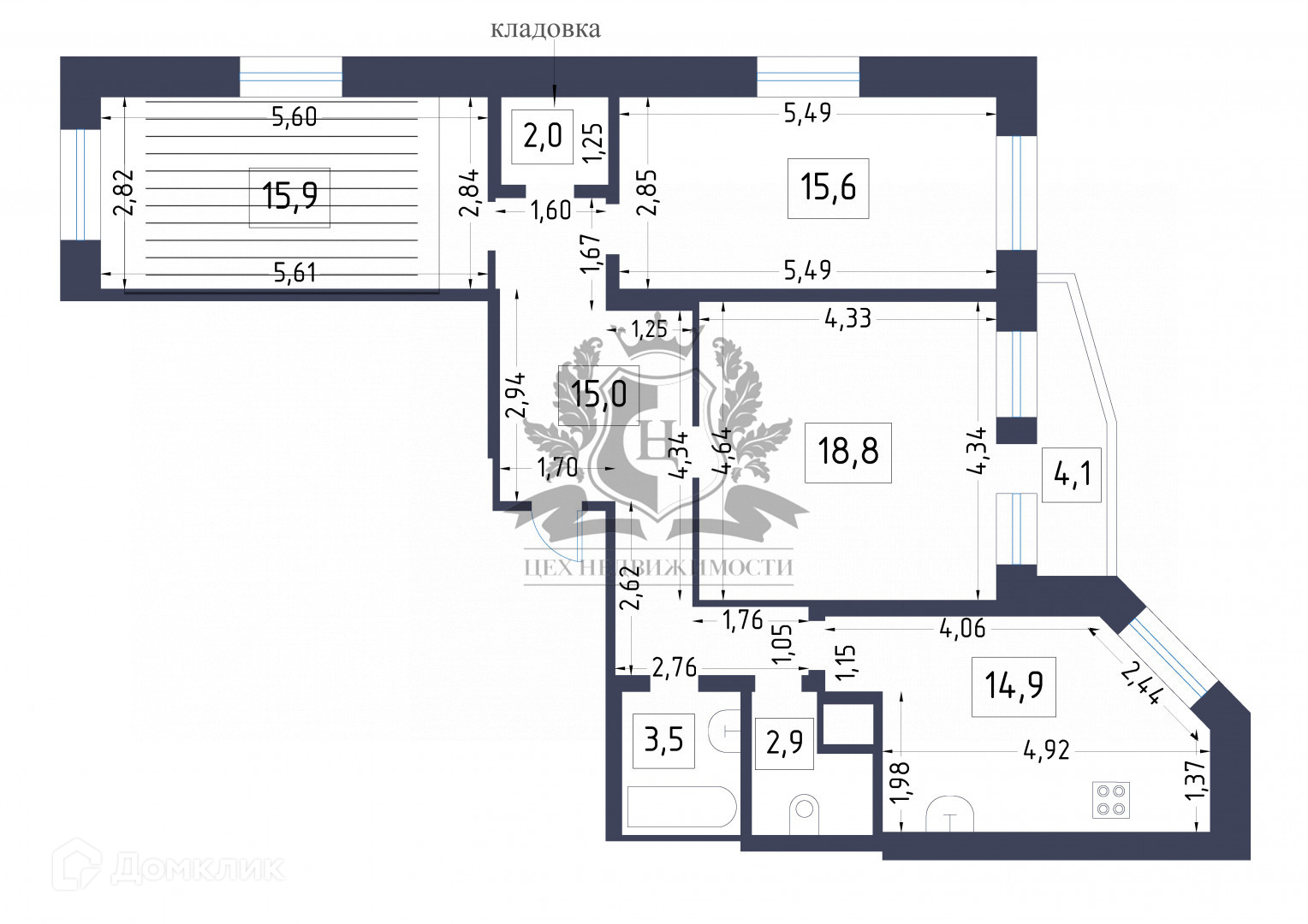 Площадь кухни 15 м2