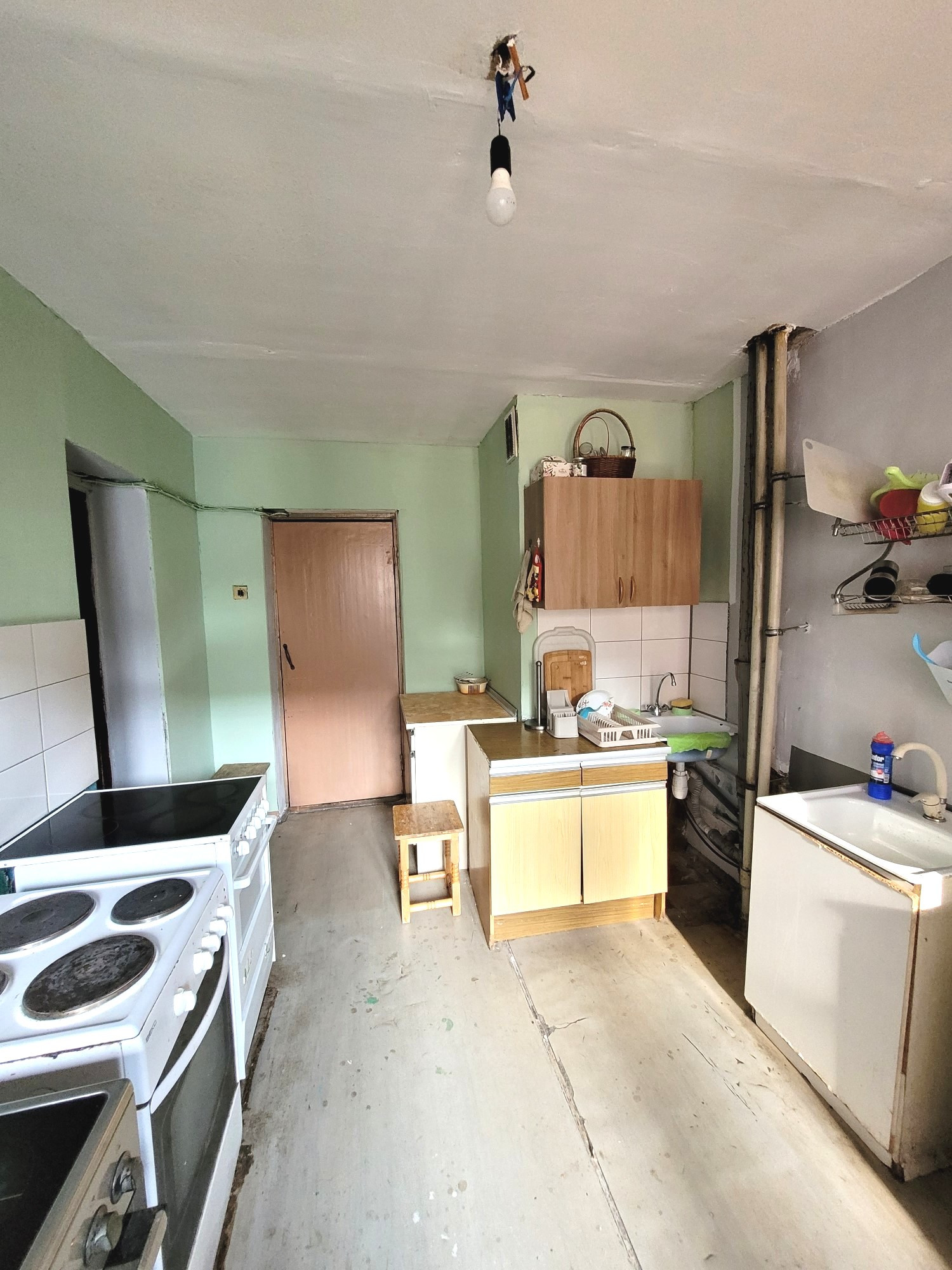 Вторая комната подготовлена под ремонт. Есть стиральная машина, холодильник.