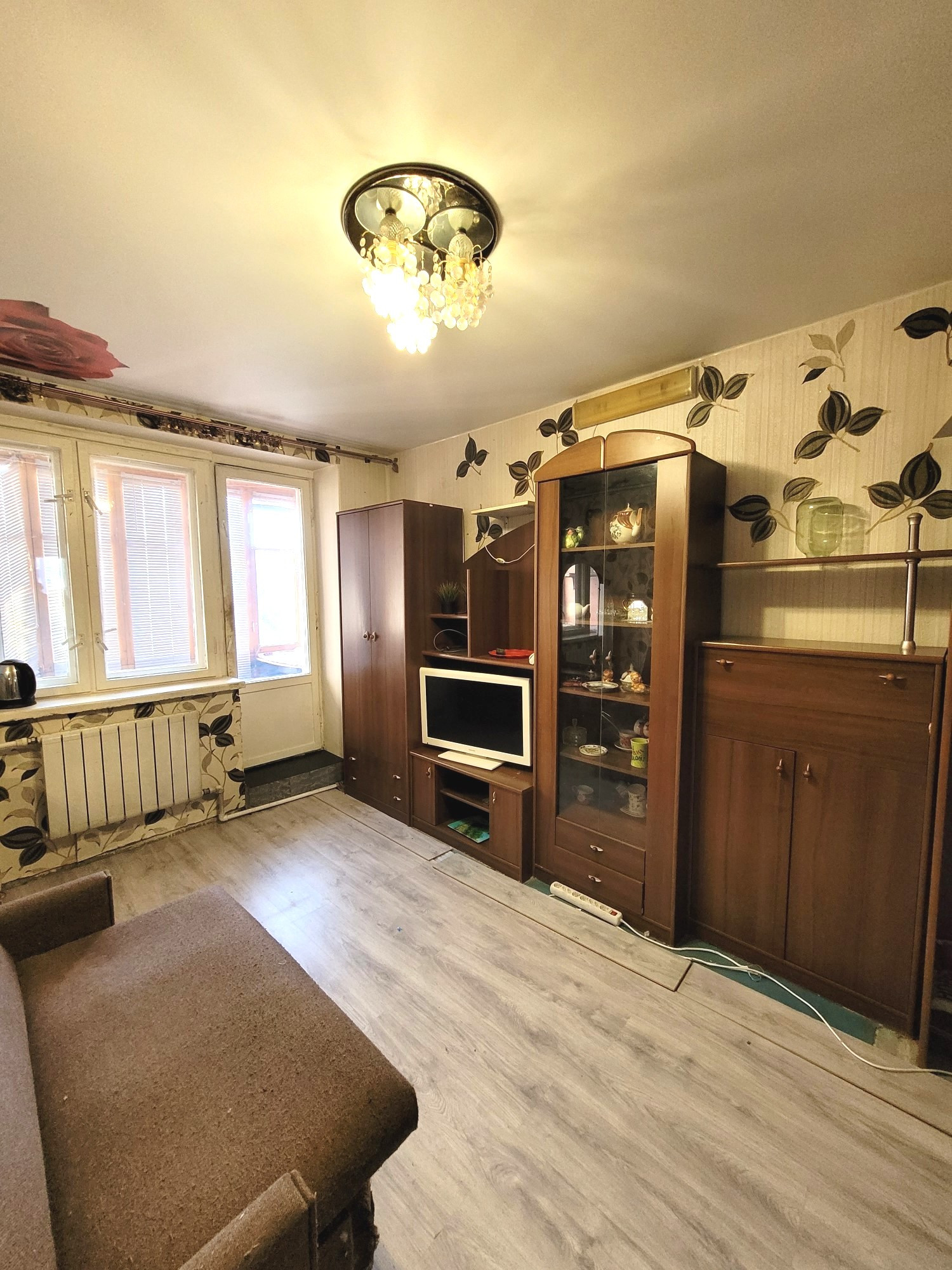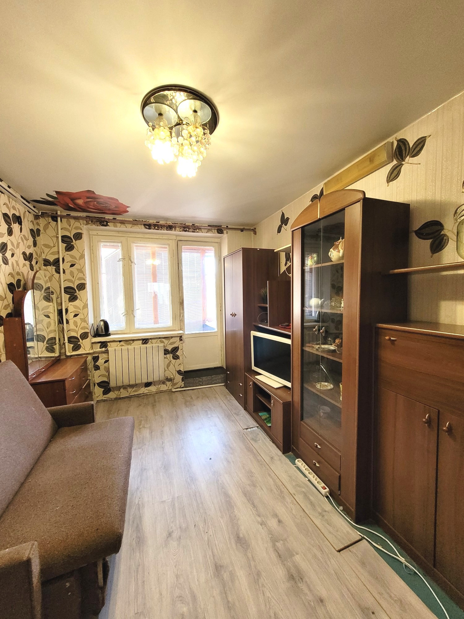 В одной комнате есть застекленная лоджия, частично сделан ремонт, мебель по желанию покупателя остается.