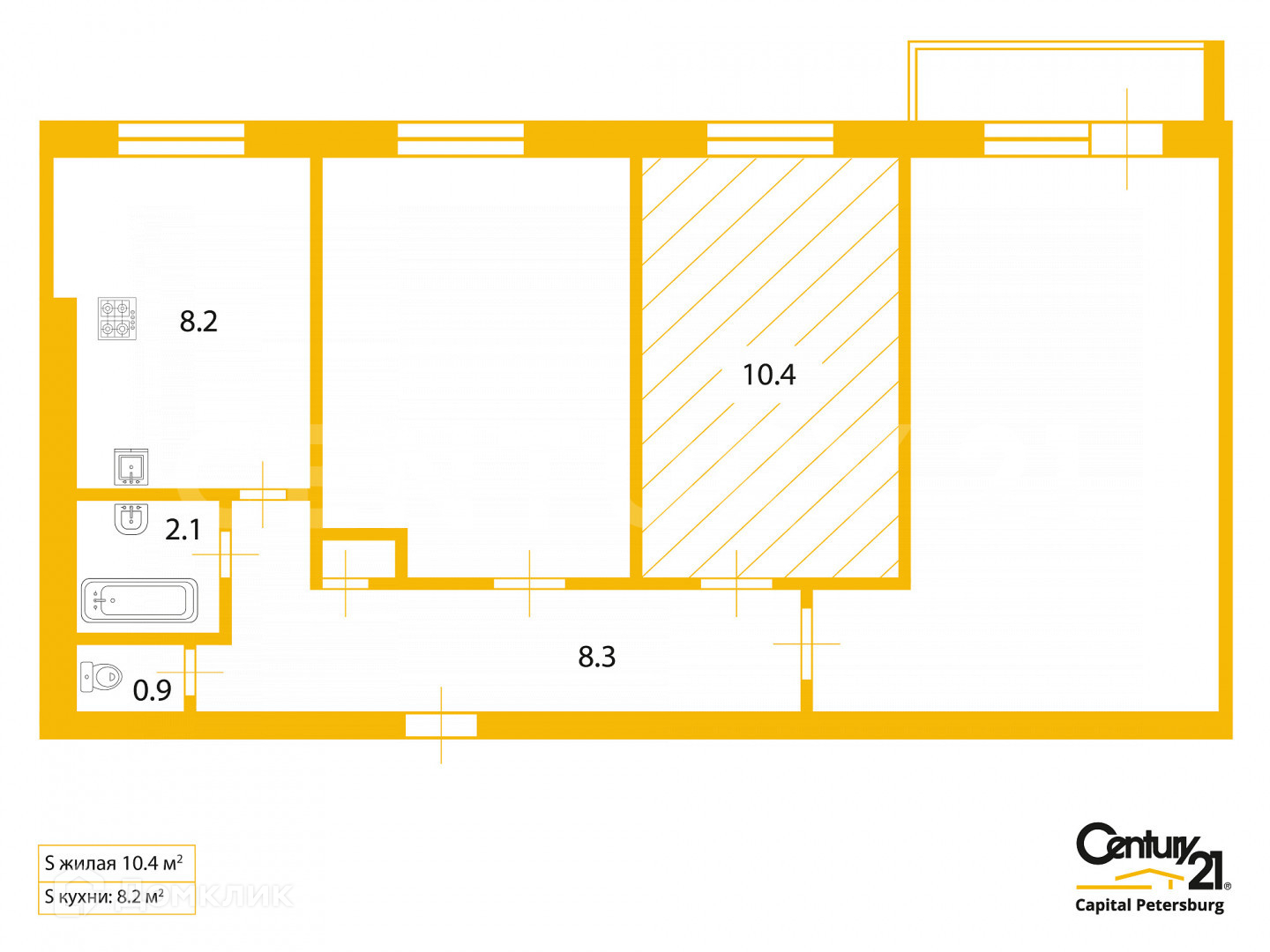 Жилая площадь 10.4 м2