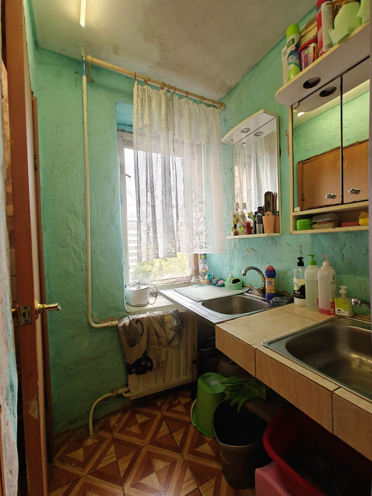 В продаже 2 комнаты(12,4+12,6+8),соединённые лоджией, общей площадью 32 кв.м в блоке всего из 6 квартир. Места общего пользования чистые.