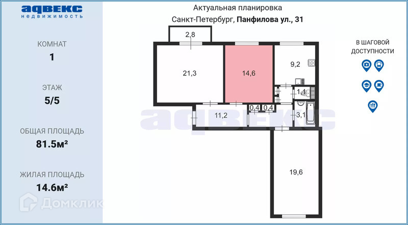 Общая площадь 81.5 м2