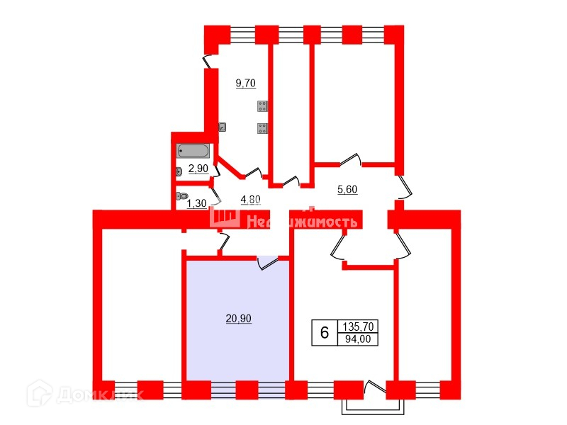 Общая площадь 135.7 м2