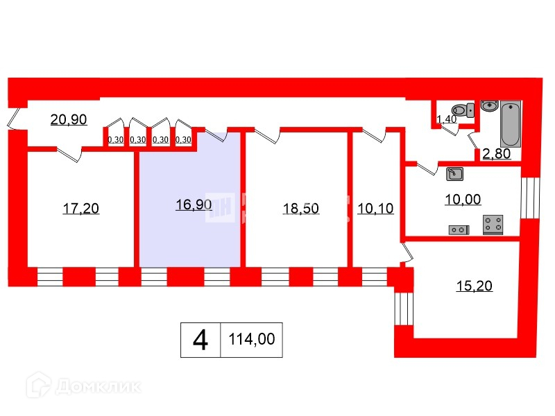 Общая площадь 114 м2