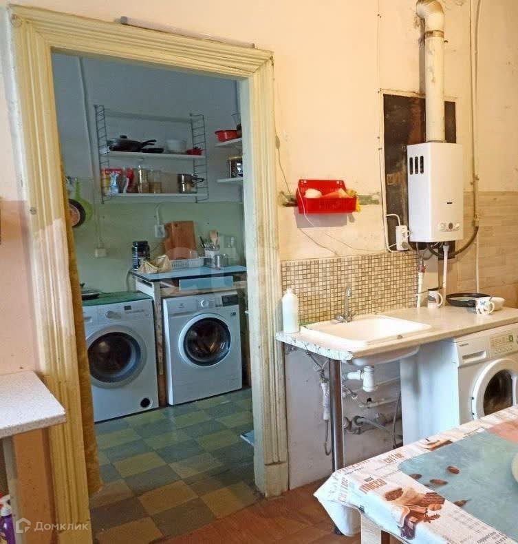 О КВАРТИРЕ:  Санузел  раздельный, опрятный,  ванная чистая, с умывальником. Газовая колонка. Кухня просторная, к ней принадлежат два помещения 16,1 и 6,8 м кв, там находятся стиральные машины. Есть место для стиральной машины, закрепленное за комнатой. Есть кладовка. Есть лестница черного хода во двор. В квартире всегда тихо и спокойно, проживают всего 5 человек, никто никому не мешает. Собственники других комнат никогда не против произведения улучшений в квартире.
