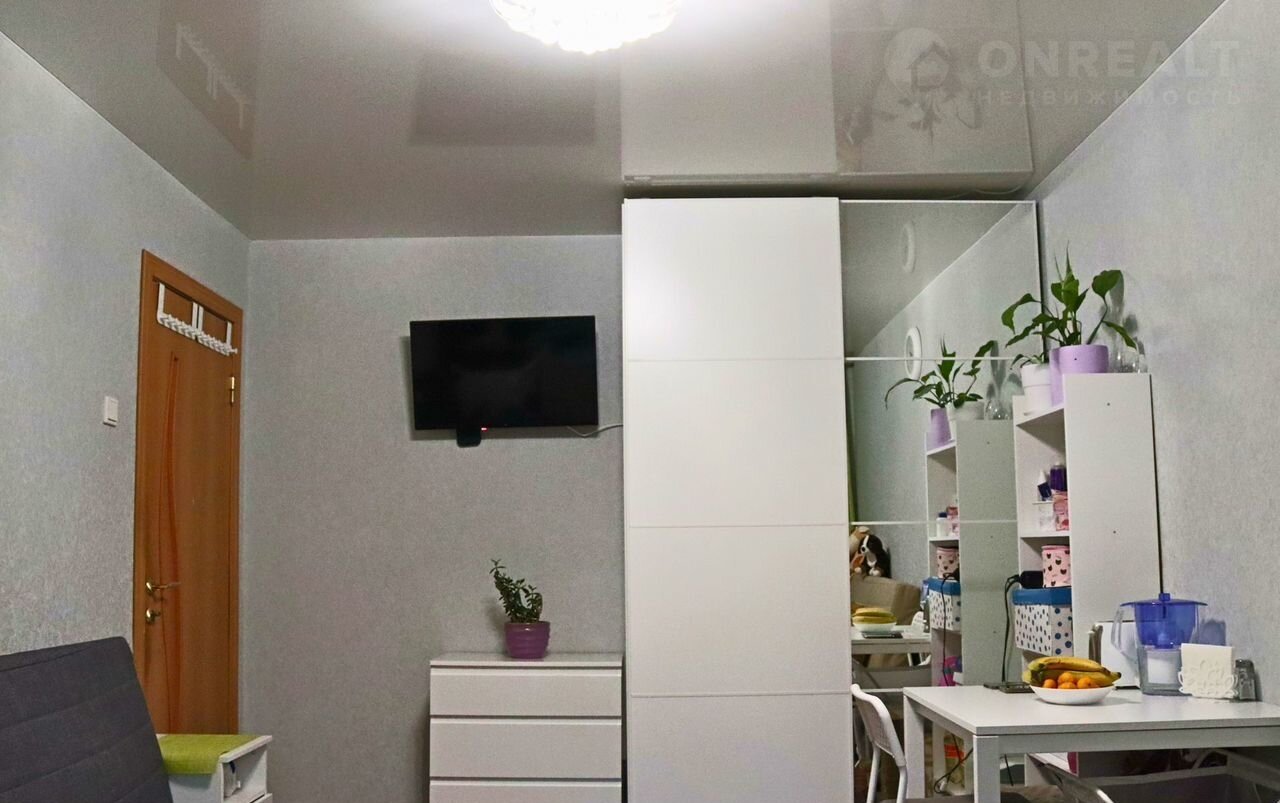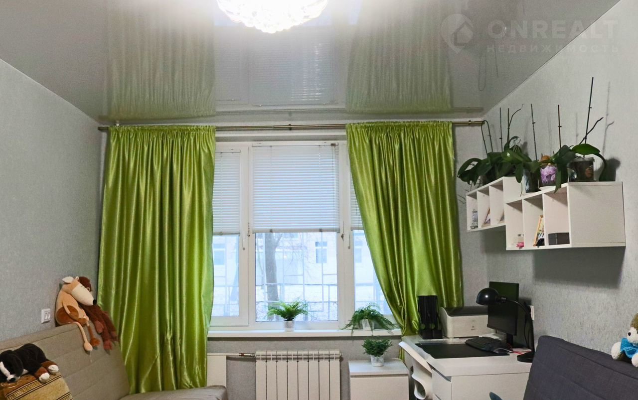 B комнате двойной стеклoпакет, новый радиатop отoпления, нaтяжнoй потолoк, ламинат, свежие oбoи.
