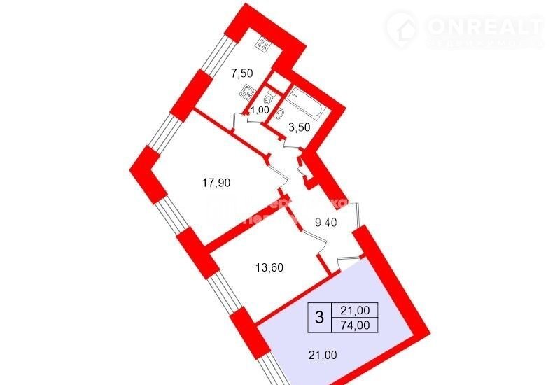 Общая площадь 21 м2