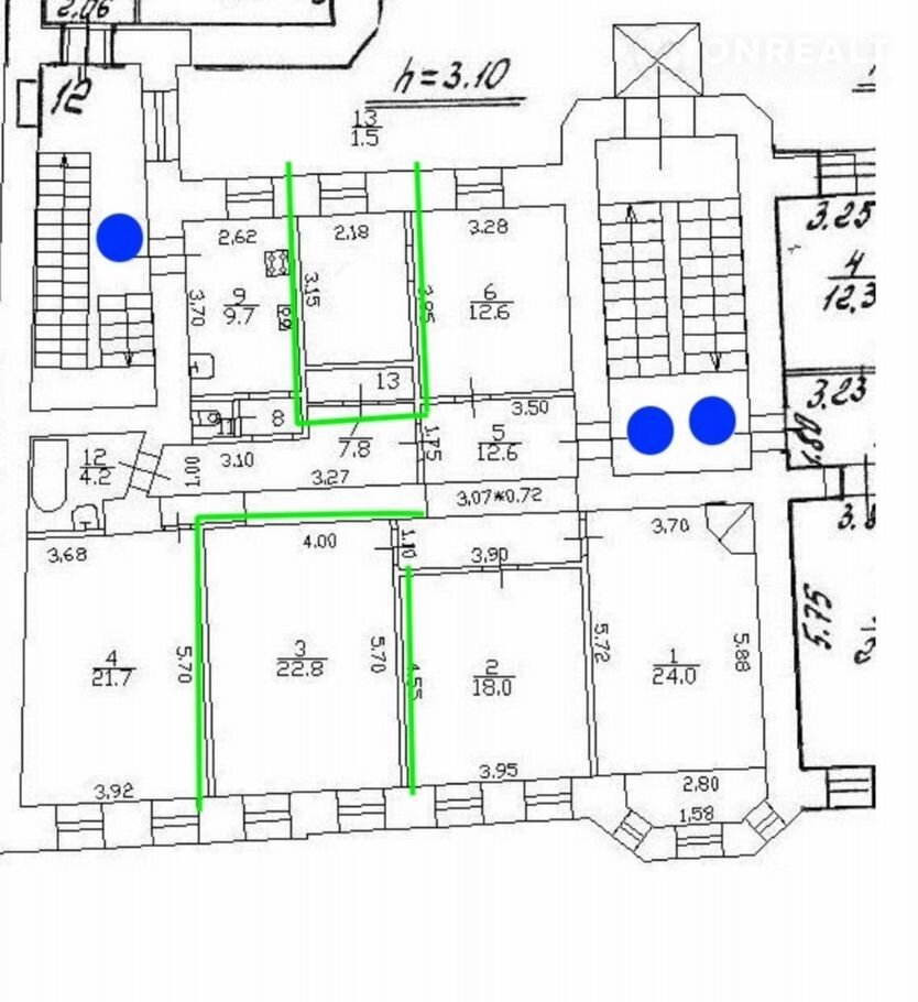 Продается две комнаты (отмечены на плане).