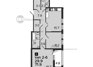 Жилая: 29.4 м2