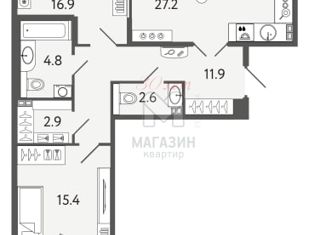 Лучшие условия покупки! Ипотека с сниженной ставкой, Рассрочка, Скидка! ЗВОНИТЕ Общая площадь 81,7 м² Кухня 27,2 м² Комната 16,9 м² Комната 15,4 м² 1й санузел 4,8 м² 2й санузел 2,6 м² Гардеробная 2,9 м² Прихожая 11,9 м² Лоджия 4,2 м² Прекрасная квартира с уникальными характеристиками ждет своего владельца в престижном районе Санкт-Петербурга. Квартир... |