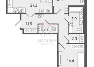 Лучшие условия покупки! Ипотека с сниженной ставкой, Рассрочка, Скидка! ЗВОНИТЕ Общая площадь 81,4 м² Кухня 27,3 м² Комната 14,4 м² Комната 16,9 м² 1й санузел 5,9 м² 2й санузел 2,7 м² Гардеробная 2,3 м² Прихожая 11,9 м² Лоджия 4,2 м² Прекрасная квартира с уникальными характеристиками ждет своего владельца в престижном районе Санкт-Петербурга. Квартир... |