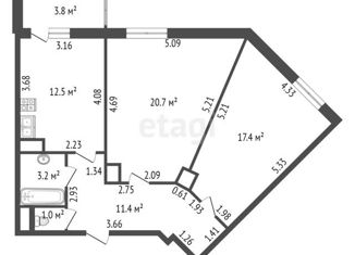 Продается 2-комнатная квартира, 61.1 м2, улица Лидии Зверевой, 9к2
