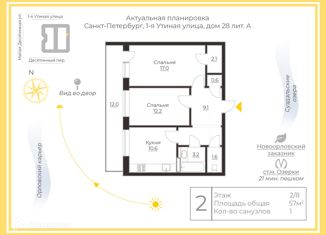 Продаю двухкомнатную квартиру, 55.9 м2, Удельный проспект, 27