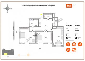 Продажа двухкомнатной квартиры, 109 м2, Московский проспект, 172к4