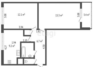 Продажа двухкомнатной квартиры, 52.4 м2, проспект Большевиков, 2