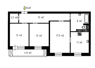 Общая площадь: 55.2 м2