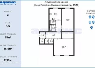Общая площадь: 75.3 м2
