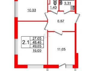 Общая площадь: 49.65 м2