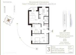Продажа 3-комнатной квартиры, 75.8 м2, Афонская улица, 24к2