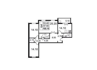 Общая площадь: 97.4 м2