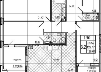 Общая площадь: 128.61 м2