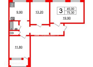 Общая площадь: 75.3 м2
