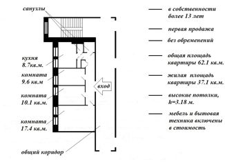 Общая площадь: 62.1 м2