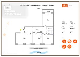 Продается 3-комнатная квартира, 79.9 м2, Рыбацкий проспект, 5к1