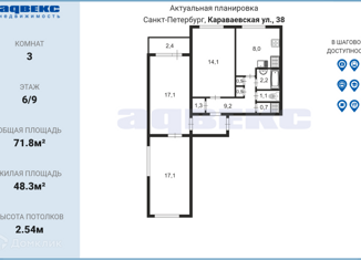 Продажа 3-ком. квартиры, 67.8 м2, Караваевская улица, 10к1