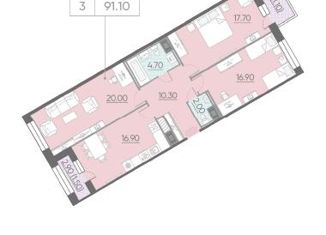 Трехкомнатная квартира на продажу, 91.1 м2