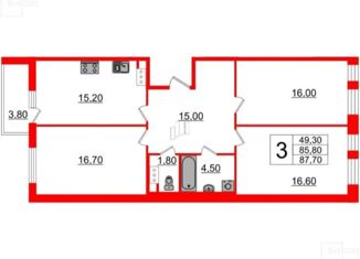 Трехкомнатная квартира на продажу, 87.7 м2, Манчестерская улица, 3