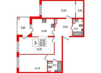 Продажа 3-ком. квартиры, 86.23 м2, Пискарёвский проспект, 25к2