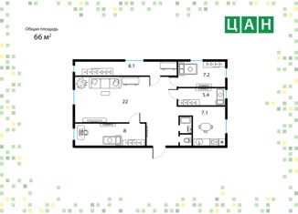 Общая площадь: 66.2 м2