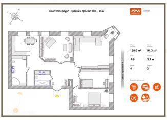 Продается 5-комнатная квартира, 158 м2, Средний проспект Васильевского острова, 23