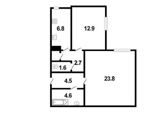 Общая площадь: 55.5 м2