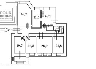 Арт. 33811801 Квартира в доходном доме купца И. В. Галунова. О квартире. Четырехкомнатная квартира расположена на четвертом этаже. Общая площадь — 126.5 м². В квартире имеется два входа, парадный с роскошной лестницей и барской ступенькой, и вход со двора с новым лифтом. Высота потолков 3,22 метра. Окна квартиры выходят в тихий, зеленый и просторны... |