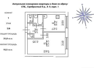 Продам 1-ком. квартиру, 31 м2, Серебристый бульвар, 9к1