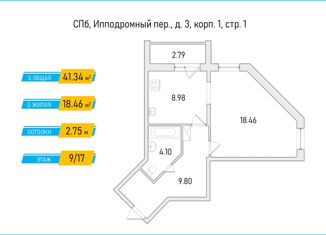 1-комнатная квартира на продажу, 41.34 м2, Ипподромный переулок, 3к1