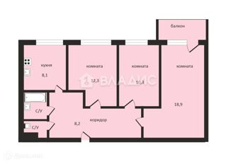 Общая площадь: 30.8 м2