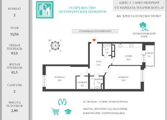 Двухкомнатная квартира общей площадью 83,0 кв.м!!! в ЖК Полюстровский кристалл. О КВАРТИРЕ: Квартира с черновой отделкой. Окна на две стороны: во двор и в сторону парка. Отличная планировка: просторная кухня- гостиная 16,5 кв.м. с балконом 5,1 кв.м; две комнаты правильной формы 21 и 20,5 (с гардеробной!) кв.м.; холл 14 кв.м. с возможностью отделени... |