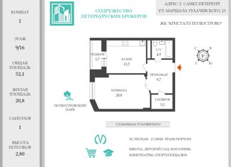 Квартира на продажу студия, 22.2 м2, Львовская улица, 9