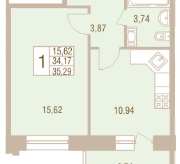 Общая площадь: 35.29 м2