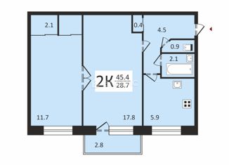 Общая площадь: 44.8 м2
