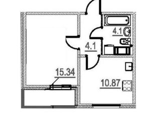 Общая площадь: 34.3 м2