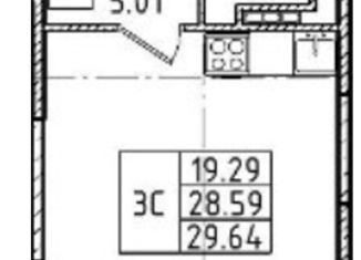 Продажа однокомнатной квартиры, 31.3 м2, Витебский проспект, 53к2