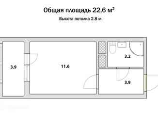Общая площадь: 22.6 м2