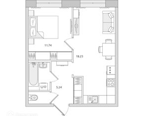 Продам квартиру студию, 34.7 м2, Волковский проспект, 6