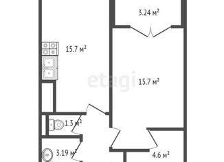Продажа 1-комнатной квартиры, 42.5 м2, улица Беринга, 23к2